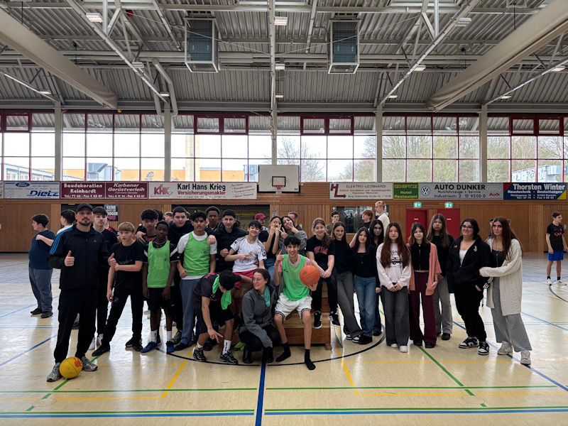 Heute verwandelte sich unsere Sporthalle in eine echte Basketball-Arena (s. Bild): Beim ersten Basketball-Jahrgangsturnier der 8. Klassen stand alles im Zeichen von Teamgeist, Fairness und spannenden Spielen. Gespielt wurde im dynamischen 3x3-Modus, bei dem jede Klasse gleich zwei Teams stellte.