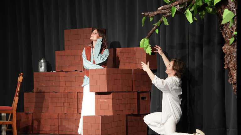 Hier bringt der „Taugenichts“ (Nathan Theiler) der vermeintlichen Gräfin Aurelie (Leni Müller) ein Ständchen dar. © Christine Fauerbach